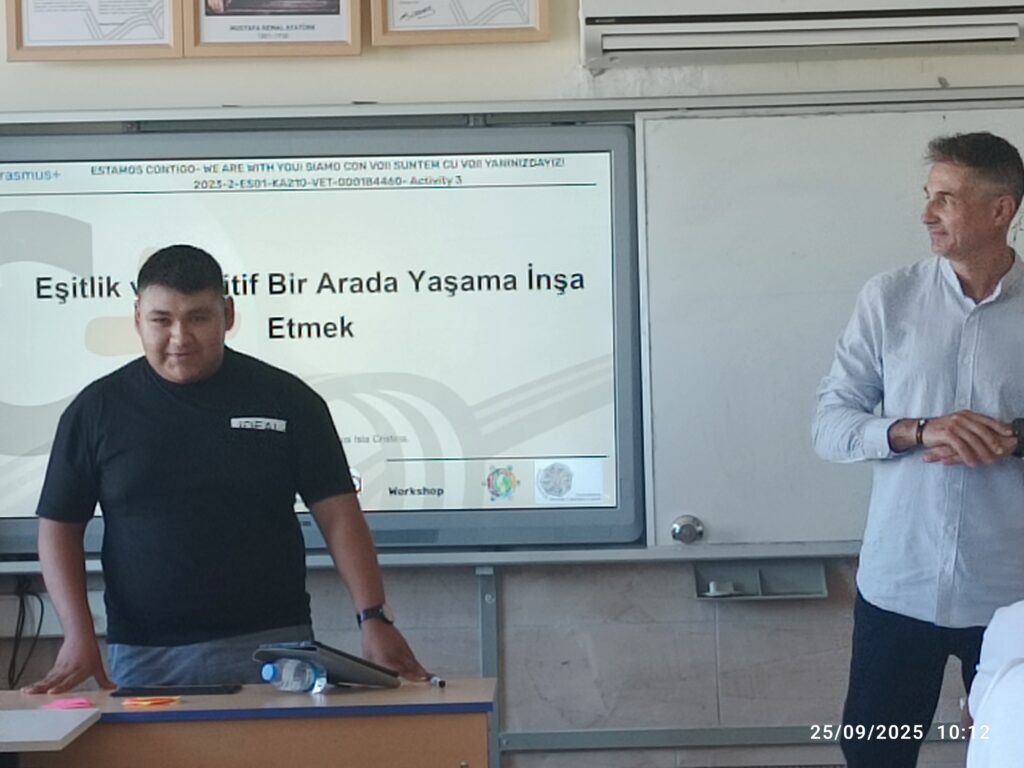 10:00-12:00 meeting with school principal and -workshop and presentation at Serik Orhangazi vocational high school with 1th group 9º and 10º grade with 30 students
