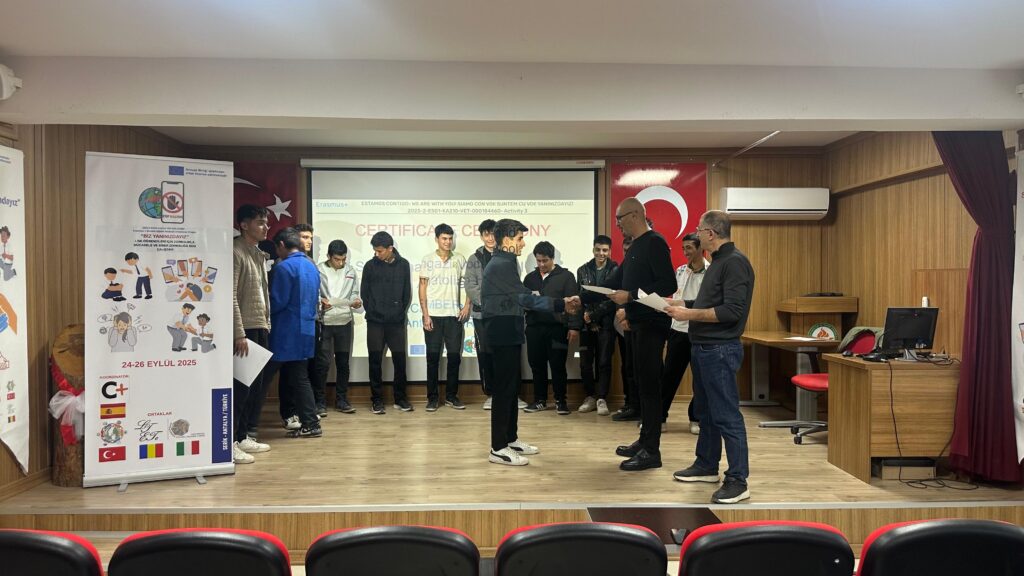 Estamos contigo!, ha sido desarrollado junto a sus socios de RUMANÍA-Liceul Tehnologic de Electronica si Telecomunicatii Gh. Marzescu Iasi, TURQUÍA-SERGED-Serik Youth Education Culture Environment and Sport Association e ITALIA: Istituto Istruzione Superiore ‘E. Majorana – A. Cascino’. Piazza Armerina